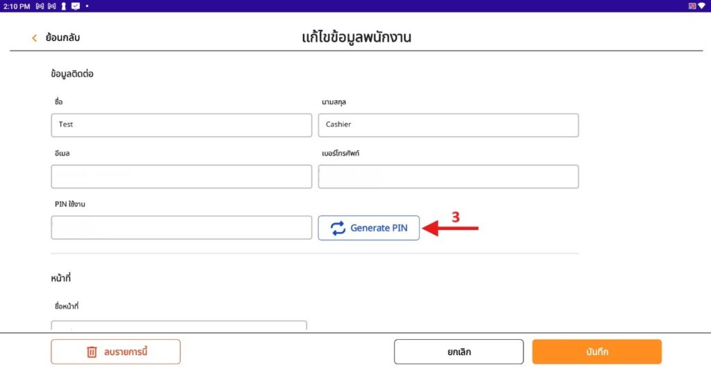 - เมื่อแก้ไขข้อมูลพนักงานเสร็จให้กดปุ่ม Generate PIN