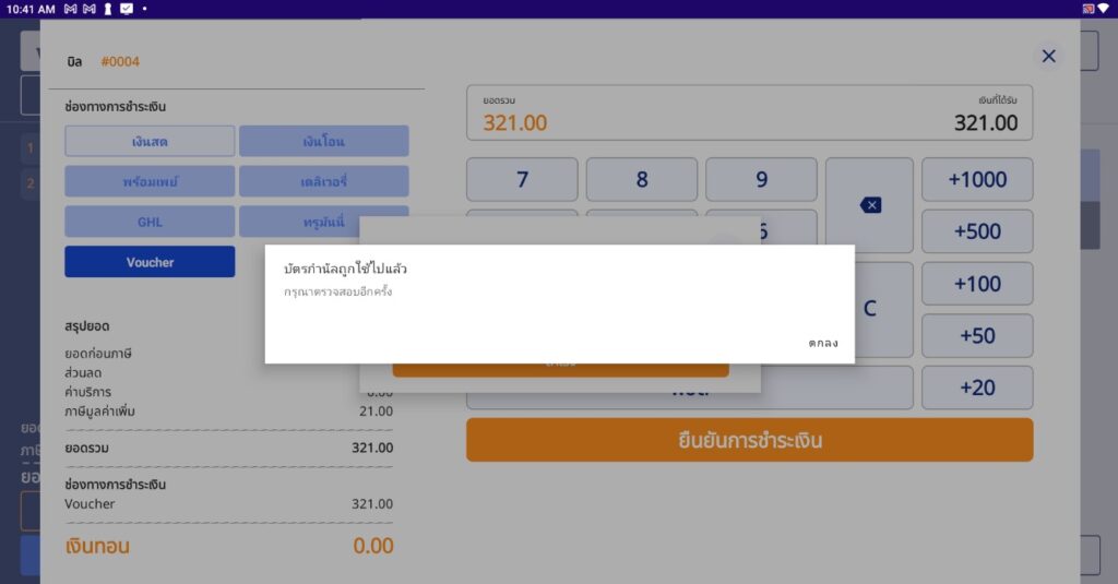 ระบบแจ้งเตือนว่า ถูกใช้งานไปแล้ว เนื่องจาก รหัสคูปองบัตรกำนัล ถูกใช้งานไปแล้ว ทำให้ไม่สามารถใช้รหัสคูปองบัตรกำนัลได้