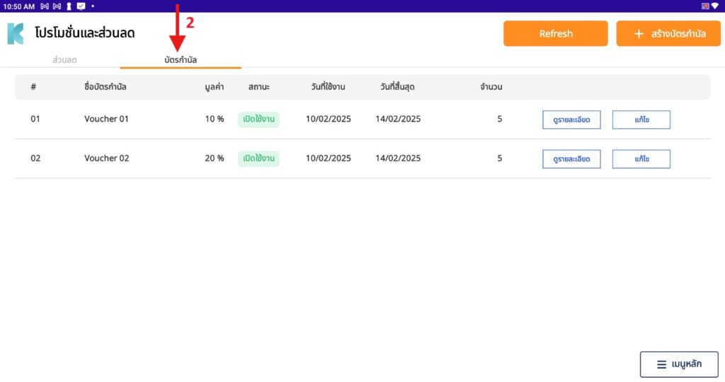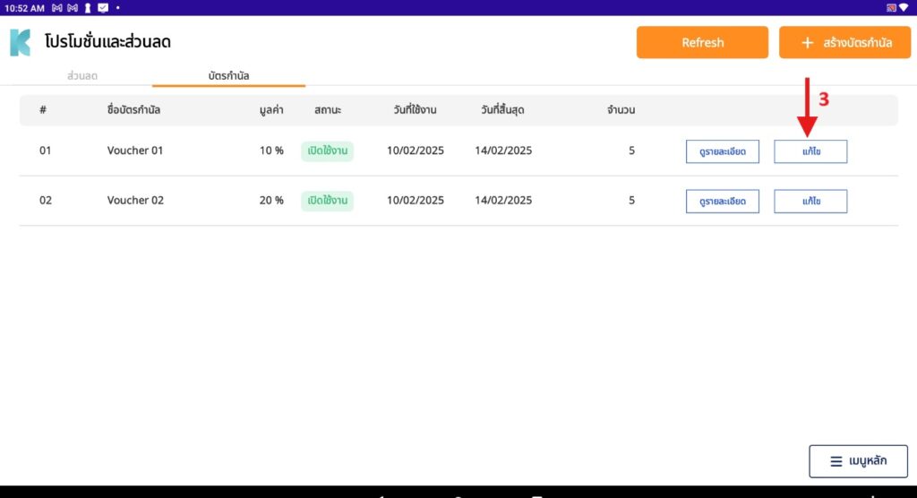 - กดปุ่ม แก้ไข ของบัตรกำนัล