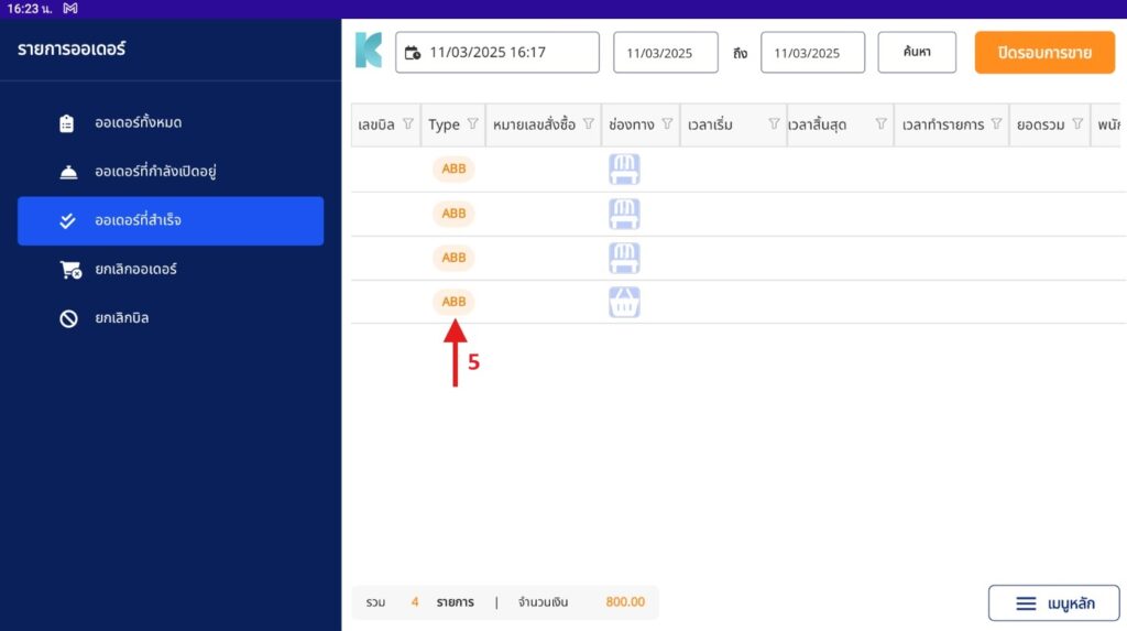 - ออเดอร์ที่แสดง Type เป็น ABB จะสามารถออกใบกำกับภาษีได้