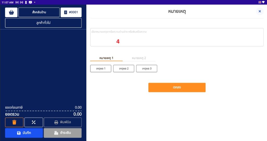4. กรอกหมายเหตุ หรือเลือกหมายเหตุที่เพิ่มไว้